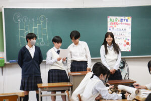 次週は各クラスの代表が1年生総合進学コース全生徒の前で発表を行います。