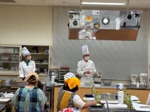 「シューがうまく膨らむか心配」といった声も聞かれましたが、オーブンから取り出されたお菓子はお手本のようにふっくらと仕上がり、美味しそうな香りが広がると、各班から歓声が上がりました。