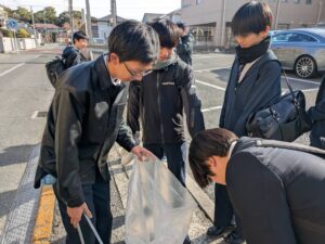 期末考査終了後に、普段から使用している通学路や地域に感謝をしつつ学校周辺の清掃を行いました。