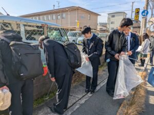 12月10日(水)に、美化委員・生徒会・文化部員による近隣ボランティア清掃活動が行われました。