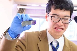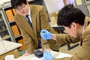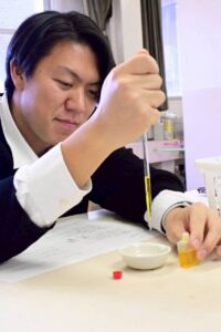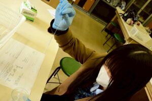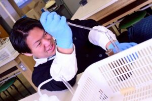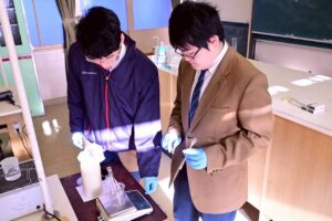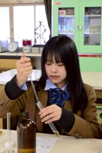 3年生総合進学コース(理数科学系統)の生徒が化学の授業で実験を行いました。