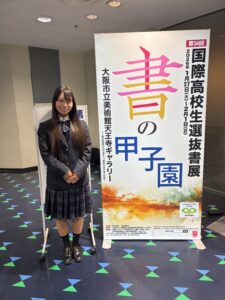 また、午後1時より、毎日新聞大阪本社オーバーホールで表彰式が行われました。上位入賞した生徒の揮毫や、団体優勝した高校の書道パフォーマンスが行われ、とても勉強になりました。