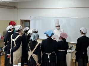 2月5日(木)、大阪市立松虫中学校にて、数学と製菓の出前授業を行いました。