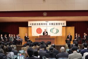 2月20日(金)に令和7年度 第9回 大阪緑涼高等学校 卒業証書授与式が執り行われ、165人の生徒が卒業しました。