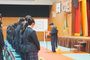 入学式では、緊張している新入生に対し、学校長から式辞、保護者会会長から祝辞をいただきました。また、新入生代表が、これからの学校生活への期待や抱負を堂々と宣言してくれました。