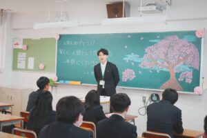 式後に学年団が紹介され、その後のホームルームでは担任から本校生徒としての心構えなどの話がありました。