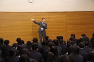 ウォークラリーなどを楽しみクラスメイトとの交流をしている一方、校長講話や学年主任からの言葉にはしっかりと耳を傾け、真剣に聴いている様子が見られました。