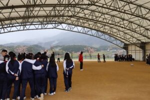 2日目は、悪天候のため当初の予定を変更して、伊香立運動公園でチームビルディングを行いました。また、近江八幡散策で郷土資料館・歴史民俗資料館・かわらミュージアム・旧西川家住宅(※ロープウェイは中止し、旧西川家住宅へ変更しました)を行いました。そして宿舎に戻りクラスレクリエーションを行いました。