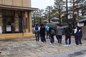 チームビルディングではインストラクターさんの指示に従って、クラスメイトと協力し、親交を深めることができました。生徒は一つひとつの種目を楽しんでいる姿が見られました。また、ガイドさんの説明を受けながら行った近江八幡散策では、「あと2時間、散策したかった」といいった声などがあり、楽しく歴史・文化を学ぶことができました。