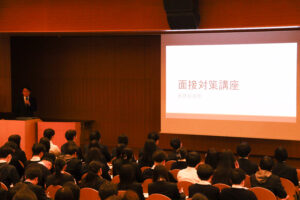今回の講話を通して、生徒たちは面接に対する理解を深めるとともに、これからの進路実現に向けて具体的な準備の必要性を実感する機会となりました。